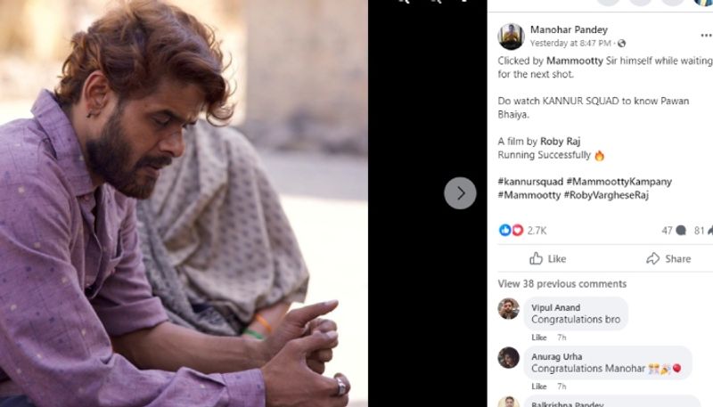 ഒപ്പം പവൻ ഭയ്യ ആരാണെന്ന് അറിയാൻ കണ്ണൂർ സ്ക്വാഡ് കാണൂ എന്നും ഇദ്ദേഹം പറയുന്നുണ്ട്. മനോഹറിന്റെ ഫോട്ടോ മമ്മൂട്ടി കമ്പനിയും പങ്കുവച്ചിട്ടുണ്ട്. മനോഹറിന്റെ ഫോട്ടോ വന്നതിന് പിന്നാലെ അദ്ദേഹത്തിന്റെ പോസ്റ്റിന് താഴെ ആശംസകളുമായി മലയാളികൾ രംഗത്ത് എത്തുകയാണ്.