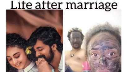 വിവാഹത്തിന് ശേഷം എന്ന തലക്കെട്ടോടു കൂടിയാണ് ഫോട്ടോ ചെയ്തിരിക്കുന്നത്. പ്രതീക്ഷയും യാഥാര്ഥ്യവും എന്നും എഴുതിയിരിക്കുന്നു. പ്രതീക്ഷ എന്ന തലക്കെട്ടിനു മുകളില് പ്രണയാതുരരായ പേളിയും ശ്രീനിഷുമാണ് ഉള്ളത്. മറുവശത്ത് മുഖത്ത് കരിതേച്ച് നില്ക്കുന്ന ഫോട്ടോയും.