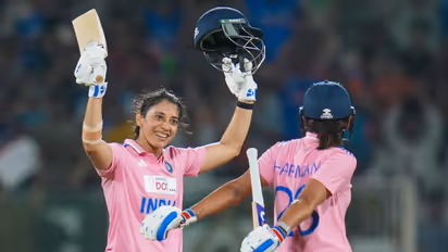 ഈ കലണ്ടര് വര്ഷം ഇടം കയ്യൻ ബാറ്റര് നേടുന്ന നാലാമത്തെ സെഞ്ച്വറി. കഴിഞ്ഞ വര്ഷവും നാല് ശതകം നേടാൻ സ്മ്യതിക്ക് കഴിഞ്ഞിരുന്നു. ഏകദിന ലോകകപ്പിന് 10 ദിവസം മാത്രം ബാക്കി നില്ക്കെയാണ് ഓസീസിനെതിരായ ഈ പ്രകടനം. മൂന്ന് മത്സരങ്ങള് ഉള്പ്പെട്ട പരമ്പരയില് 300 റണ്സ്. രണ്ട് സെഞ്ച്വറി ഒരു അര്ദ്ധ സെഞ്ച്വറി.