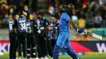 കീവീസിന്റെ കൂറ്റന് വിജലക്ഷ്യം മറികടക്കാന് മിന്നുന്ന തുടക്കം വേണ്ടിയിരുന്ന ഇന്ത്യക്ക് തുടക്കത്തിലെ ക്യാപ്റ്റന് രോഹിത് ശര്മയെ(1) നഷ്ടമായി. പിന്നീട് ധീശര് ധവാനും(18 പന്തില് 29) വിജയ് ശങ്കറും(18 പന്തില് 27) ചേര്ന്ന് ഇന്ത്യക്ക് പ്രതീക്ഷ നല്കിയെങ്കിലും ധവാനെ ഫെര്ഗൂസനും ശങ്കറെ സാന്റനറും മടക്കിയതോടെ ഇന്ത്യ കൂട്ട തകര്ച്ചയിലായി. ഋഷഭ് പന്ത്(10 പന്തില് 4) ഒരിക്കല് കൂടി നിരാശപ്പെടുത്തിയപ്പോള് ദിനേശ് കാര്ത്തിക്ക്(5), ഹര്ദ്ദിക് പാണ്ഡ്യ(4), ക്രുനാല് പാണ്ഡ്യ(20) എന്നിവര്ക്കും കാര്യമായൊന്നും ചെയ്യാനായില്ല. കീവീസിനായി സൗത്തി മൂന്നും ഫെര്ഗൂസന്, സാന്റനര്, ഇഷ് സോധി എന്നിവര് രണ്ട് വിക്കറ്റ് വീതവും വീഴ്ത്തി.