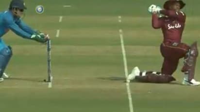 വിശാഖപട്ടണം ഏകദിനം ഓര്മ്മിപ്പിച്ച് കൂറ്റനടികളുമായി 21 പന്തില് മൂന്ന് സിക്സും രണ്ട് ഫോറുമടക്കം 37 റണ്സെടുത്ത് മുന്നേറുകയായിരുന്നു ഈ സമയം വിന്ഡീസ് ബാറ്റ്സ്മാന്. എന്നാല് സെക്കന്റിന്റെ ചെറിയൊരംശത്തില് ധോണിയുടെ കൈകള് ഹെറ്റ്മെയറെ കുടുക്കി. ധോണിയുടെ കണ്ണും കൈകളും തമ്മിലുള്ള പൊരുത്തം ഒരിക്കല് കൂടി തെളിയിക്കുകയായിരുന്നു ഈ സ്റ്റംപിങ്.