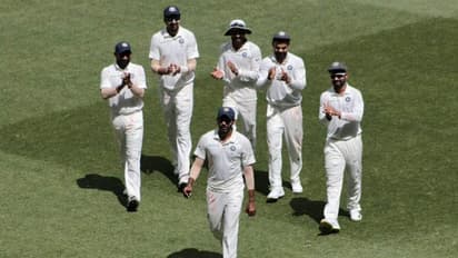 വന് തകര്ച്ചയാണ് ഇന്ത്യ രണ്ടാം ഇന്നിങ്സില് നേരിട്ടത്. ഓപ്പണര്മാര് തുടക്കത്തില് 28 റണ്സ് കൂട്ടിച്ചേര്ത്തു. എന്നാല് അടുത്ത് നാല് റണ്സ് കൂട്ടിച്ചേര്ക്കുന്നതിനിടെ ഇന്ത്യക്ക് നാല് വിക്കറ്റുകള് നഷ്ടമായി. ഹനുമ വിഹാരി(13), ചേതേശ്വര് പൂജാര(0), വിരാട് കോലി(0), അജിന്ക്യ രഹാനെ(1) എന്നിവരുടെ വിക്കറ്റുകളാണ് ഇന്ത്യക്ക് നാല് റണ്സെടുക്കുന്നതിനിടെ നഷ്ടമായത്. പാറ്റ് കമ്മിന്സാണ് നാലും വിക്കറ്റും വീഴ്ത്തിയത്. രോഹിത് ശര്മ (5) പിടിച്ചു നില്ക്കാന് ശ്രമിച്ചെങ്കിലും ഹേസല്വുഡിന്റെ പന്ത് കട്ട് ഷോട്ടിന് ശ്രമിക്കുന്നതിനിടെ ടിം പെയ്നിന് ക്യാച്ച് നല്കി മടങ്ങി. നേരത്തെ, വിഹാരിയെ കമ്മിന്സ് സ്ലിപ്പില് ഖവാജയുടെ കൈകളിലെത്തിച്ചപ്പോള് കോലിയും പൂജാരയും സമാനമായ ഷോട്ടുകളില് ഷോര്ട്ട് ഫൈന് ലെഗ്ഗില് ഹാരിസിന് ക്യാച്ച് നല്കി മടങ്ങി. രഹാനെ കമ്മിന്സിന്റെ പന്തില് ടിം പെയ്നിന് പിടികൊടുത്തു.