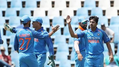 ടോസ് നേടിയ ടീം ഇന്ത്യയുടെ നായകന് വിരാട് കോലി ദക്ഷിണാഫ്രിക്കയെ ബാറ്റിംഗിന് അയക്കുകയായിരുന്നു. മോശമല്ലാത്ത തുടക്കം കിട്ടിയ ദക്ഷിണാഫ്രിക്കയെ ആദ്യം ഞെട്ടിച്ചത് ഭുവനേശ് കുമാറിന് പകരം അവസരം അവസരം ലഭിച്ച താക്കൂര് ആയിരുന്നു. 10 റണ്സ് എടുത്തിരുന്ന അംലയാണ് ആദ്യം പുറത്തായത്. വിക്കറ്റ് നഷ്ടപ്പെട്ടെങ്കിലും സ്കോറിംഗിന് വേഗം കുറയ്ക്കാതെ ബാറ്റിംഗ് തുടര്ന്ന ദക്ഷിണാഫ്രിക്കയുടെ രണ്ടാമത്തെ ബാറ്റ്സ്മാനെയും താക്കൂര് അധികം വൈകാതെ പറഞ്ഞയച്ചു. മര്ക്രത്തെയായിരുന്നു താക്കൂര് അടുത്തതായി പുറത്താക്കിയത്. എബി ഡിവില്യേഴ്സിനെ പുറത്താക്കി ചാഹലും ദക്ഷിണാഫ്രിക്കയെ വിരിഞ്ഞുകെട്ടി. കിട്ടിയ അവസരം മുതലാക്കി പന്തെറിഞ്ഞ താക്കൂര് നാല് വിക്കറ്റുകള് വീഴ്ത്തിയപ്പോള് ചാഹല് രണ്ട് വിക്കറ്റുകള് സ്വന്തമാക്കി. ദക്ഷിണാഫ്രിക്കന് നിരയില് പൊരുതി നോക്കിയ സോണ്ടോയെയും (54) പുറത്താക്കിയത് ചാഹലാണ്. ഭുംറ രണ്ടു വിക്കറ്റും യാദവും പാണ്ഡ്യയും ഓരോ വിക്കറ്റും സ്വന്തമാക്കി.