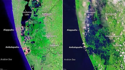 കുട്ടനാടും ആലപ്പുഴ,കോട്ടയം,പത്തനംതിട്ട ജില്ലകളും വെള്ളത്തില് മുങ്ങിയ നിലയിലാണ് ഉപഗ്രഹചിത്രങ്ങളില് കാണുന്നത്. ഫെബ്രുവരി ആറിന് ലാന്ഡ്സാറ്റ് 8 ഉപഗ്രഹത്തില് നിന്നും ആഗസ്റ്റ് 22-ന് യൂറോപ്യന് സ്പേസ് ഏജന്സിയുടെ സെന്റിനല്-2 ഉപഗ്രഹത്തില് നിന്നും പകര്ത്തിയ ചിത്രങ്ങളാണ് ഇപ്പോള് പുറത്തു വന്നിരിക്കുന്നത്.