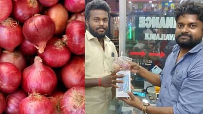 പുതുകോട്ട: രാജ്യത്ത് ഉള്ളിയുടെ വില ദിനംപ്രതി കുതിച്ചുയരുകയാണ്. ബെംഗളൂരുവില് ഞായറാഴ്ച ഉള്ളി വില 200 രൂപവരെ എത്തി. തമിഴ്നാട്ടില് 180 രൂപയാണ് ഒരു കിലോ ഉള്ളിയുടെ വില. ഉള്ളി വില ഉയരുകയും വിപണിയിൽ ഉള്ളി ലഭിക്കാതിരിക്കുകയും ചെയ്യുന്ന ഈ സന്ദർഭത്തിൽ ഉള്ളി സൗജന്യമായി നൽകി പുതിയ ബിസിനസ് മാര്ക്കറ്റിങ് തന്ത്രം മെനയുകയാണ് തമിഴ്നാട്ടിലെ ഒരു കടയുടമ.