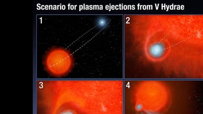ഭൂമിയില് നിന്ന് 1200 പ്രകാശവര്ഷമകലെയാണ് വി ഹൈഡ്രേ സ്ഥിതിചെയ്യുന്നത്. 8.5 വര്ഷത്തിലൊരിക്കല് നക്ഷത്രത്തിനരികില് നിന്ന് തീഗോളങ്ങള് പുറത്തുവരുന്നതായാണ് നിരീക്ഷിച്ചത്. ഭൂമിയില് നിന്ന് ചന്ദ്രനിലേക്കുള്ള ദൂരം താണ്ടാന് ഈ തീഗോളങ്ങള്ക്ക് വെറും 30 മിനിറ്റ് മതി. കഴിഞ്ഞ 400 വര്ഷമായി അവിടെ നിന്ന് തീഗോളങ്ങള് പുറത്തുവരുന്നു എന്ന് ഗവേഷകര് കണ്ടെത്തിയിട്ടുണ്ട്.