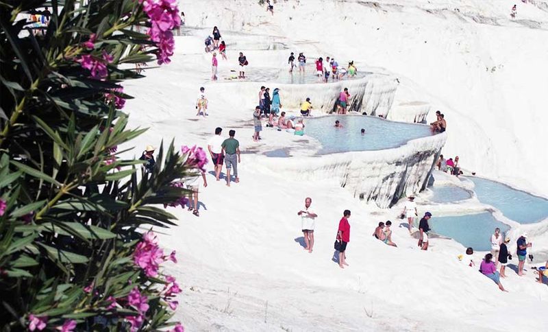 പകലിലെ വിമാനയാത്രകള് സമ്മാനിക്കുന്ന മനോഹരമായയൊരു കാഴ്ചയുണ്ട്. സൂര്യവെളിച്ചത്തില് പഞ്ഞിക്കെട്ടുകള് കൂട്ടിയിട്ടതുപോലെ അനന്തമായങ്ങിനെ പരന്നുകിടക്കുന്ന വെള്ളിമേഘങ്ങള്. ഇവയെ ഭൂമിയിലിറക്കി, അതൊരു മലയായാല് എങ്ങനെയുണ്ടാവും? ഏതാണ്ട് അത്തരമൊരു കാഴ്ചയാണ് പാമുക്കലേ നമുക്ക് സമ്മാനിക്കുന്നത്.