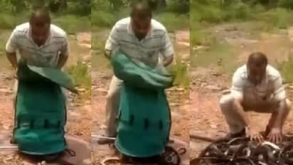 എത്രയൊക്കെ മൃഗസ്നേഹികൾ ആണെന്ന് പറഞ്ഞാലും എല്ലാവരുടെ മനസ്സിലും ഭയം ജനിപ്പിക്കുന്ന ഒരു ജീവിയാണ് പാമ്പ്. പാമ്പുകളെ നേരിട്ട് കണ്ടില്ലെങ്കിൽ പോലും പാമ്പുകളെ കുറിച്ച് കേൾക്കുമ്പോഴും വീഡിയോയിൽ കാണുമ്പോഴും പോലും ഭയപ്പെട്ടു പോകുന്നവരാണ് നമ്മളിൽ ഭൂരിഭാഗവും. അപ്പോൾ പിന്നെ ഒരു ചാക്ക് നിറയെ പാമ്പുകളെ ഒരുമിച്ച് കണ്ടാൽ എന്തായിരിക്കും അവസ്ഥ.