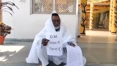 മരിച്ചുവെന്ന് സർക്കാർ രേഖകൾ. മരിച്ചിട്ടില്ലെന്ന് തെളിയിക്കാൻ സ്വന്തം മരണം അഭിനയിച്ച് വൃദ്ധന്റെ പ്രതിഷേധം. സോഷ്യൽ മീഡിയയിൽ വൈറലായി വീഡിയോ. ഉത്തർപ്രദേശിലെ ബസ്തി ജില്ലയിലാണ് ഈ നാടകീയ സംഭവങ്ങൾ അരങ്ങേറിയത്. ജില്ലാ മജിസ്ട്രേറ്റിന്റെ ഓഫീസിനു മുന്നിൽ വെള്ള പുതച്ച്, മാലയണിഞ്ഞ് മൃതദേഹം പോലെ കിടന്ന ഇദ്ദേഹം പെട്ടെന്ന് എഴുന്നേറ്റ് 'സാബ്, ഞാൻ ജീവിച്ചിരിപ്പുണ്ട്' എന്നെഴുതിയ പ്ലക്കാർഡ് ഉയർത്തുകയായിരുന്നു. റിട്ട. സർക്കാർ ഉദ്യോഗസ്ഥനായ ഇഷാഖ് അലി എന്നയാളാണ് ഈ വേറിട്ട പ്രതിഷേധം നടത്തിയത്.