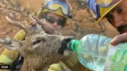 അങ്ങനെ കാട്ടുതീയിൽ നിന്നും രക്ഷപ്പെട്ടോടിയെത്തിയ ഒരു മാനിന് വെള്ളം കൊടുക്കുന്ന അഗ്നിശമന സേനാംഗമാണ് വീഡിയോയിൽ. ഒരാൾ മാനിനെ പിടിച്ചിരിക്കുന്നതും മറ്റൊരാൾ അതിന്റെ വായിലേക്ക് വെള്ളം ഒഴിച്ച് കൊടുക്കുന്നതും മാൻ അത് ആർത്തിയോടെ കുടിക്കുന്നതും വീഡിയോയിൽ കാണാം.