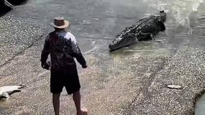 ഏതായാലും ഈ സംഭവങ്ങളെല്ലാം തന്നെ ഒരു ക്യാമറയിൽ പതിഞ്ഞു. എല്ലാം തുടങ്ങുന്നത് ഈ മുതല തന്റെ ഭക്ഷണത്തിനായി നരിമീനിനെ തിരഞ്ഞുപിടിക്കാൻ ശ്രമിക്കുന്നതിനിടയിലാണ്. ഓസ്ട്രേലിയയിലെ കക്കാഡുവിലെ ചൈൽസ് ക്രോസിംഗിലെ ജലാശയത്തിൽ മത്സ്യബന്ധന ലൈനിന്റെ അറ്റത്താണ് ഭീമാകാരമായ മുതല നരിമീനിനെ കണ്ടെത്തിയത്. എന്നാൽ, ഈ മത്സ്യത്തൊഴിലാളി മുതലയ്ക്ക് കൊടുക്കാതെ മീനിനെ വലിച്ചിടാൻ നോക്കി. ഇത് മുതലയെ ദേഷ്യം പിടിപ്പിച്ചു.