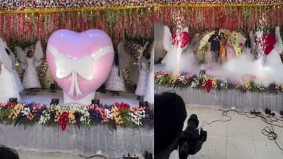 കഴിഞ്ഞ ദിവസം സോഷ്യൽ മീഡിയയിൽ വൈറലായ ഒരു വീഡിയോയിൽ നവദമ്പതികളെ വിവാഹവേദിയിൽ എത്തിക്കുന്നത് ബലൂണിനുള്ളിൽ കയറ്റിനിർത്തി അത് പൊട്ടിച്ചാണ്. ഹൃദയത്തിൻറെ ഷേപ്പിലുള്ള ഒരു ബലൂൺ പൊട്ടുമ്പോൾ അതിനുള്ളിൽ നവദമ്പതികൾ നിൽക്കുന്ന കാഴ്ച ഇതിനോടകം സോഷ്യൽ മീഡിയയിൽ വൈറലായി കഴിഞ്ഞു. ‘ഹാർട്ട് ബ്ലാസ്റ്റ് എൻട്രി’ എന്നാണ് ഈ രംഗപ്രവേശനത്തിന്റെ പേര്.