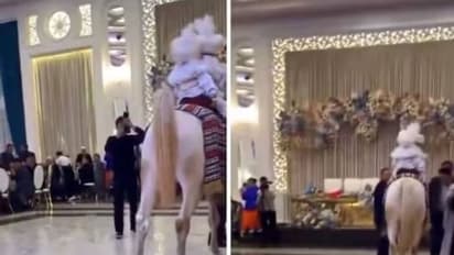 സാംസ്കാരികമായ കാരണങ്ങൾ കൊണ്ടും പരമ്പരാഗതമായി ചെയ്യുന്നത് കൊണ്ടും കുതിരകളെ വിവാഹത്തിൽ കൊണ്ടുവരുന്നവരുണ്ട്. കുതിര കരുത്തിന്റെയും സൗന്ദര്യത്തിന്റേയും പ്രതീകമായിട്ടാണ് കണക്കാക്കപ്പെടുന്നത്. ഏതായാലും, അതുപോലെ ഒരു വിവാഹാഘോഷത്തിന്റെ വീഡിയോയാണ് ഇതും. വീഡിയോ ട്വിറ്ററിൽ ഷെയർ ചെയ്തിരിക്കുന്നത് Crazy Clips ആണ്.