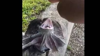എന്നിരുന്നാലും, വീഡിയോയിൽ കാണുന്ന പല്ലി ഒട്ടും അപകടകരമല്ല. ക്ലമിഡോസോറസ് അല്ലെങ്കിൽ ഫ്രിൽഡ് ഡ്രാഗൺ എന്നറിയപ്പെടുന്ന ഇവ പ്രധാനമായും ഓസ്ട്രേലിയയിലും തെക്കൻ ന്യൂ ഗിനിയയിലും കാണപ്പെടുന്നവയാണ്.