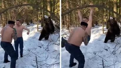 ഇതിപ്പോ എന്താ സംഭവിച്ചേ എന്ന് തോന്നിക്കുന്ന പല കാര്യങ്ങളും നമുക്ക് ചുറ്റും ഉണ്ടാകാറുണ്ട്. അതിലൊന്നാണ് ഇപ്പോൾ സാമൂഹികമാധ്യമങ്ങളിൽ വൈറലാവുന്ന ഈ വീഡിയോ(video)യും. വീഡിയോയിൽ ബോക്സിംഗ് ഗ്ലൗസ് പോലെ ധരിച്ച ഒരാൾ തന്റെ വർക്കൗട്ട് പാർട്ണർ ആണ് എന്ന് തോന്നിക്കുന്ന ഒരാളെ ഇടിക്കുന്നതായി കാണാം. അതേസമയം തന്നെ അതേ മരച്ചില്ലയിൽ തൂങ്ങി ഒരു കരടി(Bear) പുഷ് അപ്പ് ചെയ്യുന്നത് പോലെയും കാണുന്നുണ്ട്.
