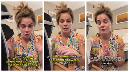 യുവതി ടിക് ടോക്കിൽ പങ്കുവച്ച വീഡിയോ മറ്റ് സമൂഹ മാധ്യമങ്ങളിലും വളരെ വേഗം പങ്കുവയ്ക്കപ്പെട്ടു. സഞ്ചാരിയും ആരോഗ്യ കാര്യങ്ങളെ കുറിച്ച് വീഡിയോ ചെയ്യുന്ന ഇൻഫ്ലൂവന്സാറായ താര വുഡാണ് ഇത്തരമൊരു വീഡിയോ ചെയ്തത്. യാത്രയ്ക്കിടയിൽ ഉപയോഗിച്ച അടിവസ്ത്രങ്ങൾ ഹോട്ടൽ മുറിയിലെ കോഫീ മിഷ്യനിൽ നിക്ഷേപിച്ച് ചൂട് വെള്ളം ഓണാക്കണമെന്നും ശേഷം ബാത്ത് റൂമിലെ ഹെയർ ഡ്രയർ ഉപയോഗിച്ച് ഉണക്കി എടുക്കാമെന്നും യുവതി വീഡിയോയിൽ പറയുന്നു. ഒപ്പം വർഷങ്ങൾക്ക് മുമ്പാണ് താൻ ഈ തന്ത്രം തന്റെ സുഹൃത്തായ ഫ്ലൈറ്റ് അറ്റന്ററിൽ നിന്നും പഠിച്ചതെന്നും യുവതി അവകാശപ്പെട്ടു. ഈ തന്ത്രം അറിയാത്തവർക്ക് വേണ്ടിയാണ് പറയുന്നതെന്നും താര വുഡ് വീഡിയോയിൽ പറയുന്നു. വീഡിയോ പങ്കുവച്ച് കൊണ്ട് താന് ഹോട്ടലിലെ കോഫീ മെഷ്യനിൽ നിന്നും കാപ്പി ഉണ്ടാക്കി കുടിക്കാറില്ലെന്ന് താര കുറിച്ചു. വീഡിയോ എക്സിൽ പങ്കുവച്ചയാൾ നിങ്ങൾ എത്ര കോഫി ഹോട്ടൽ മുറിയിൽ നിന്നും കുടിച്ചിട്ടുണ്ടെന്ന ചോദ്യം ചോദിക്കുന്നു.