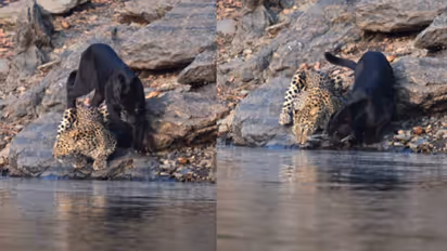 ആദ്യം ഒരു പുലി ശാന്തമായി വെള്ളം കുടിക്കുന്നത് വീഡിയോയിൽ കാണാം. തൊട്ടുപിന്നാലെ പതുങ്ങി വന്ന ഒരു കരിമ്പുലി പുലിയോടൊപ്പം ചേർന്ന് വെള്ളം കുടിക്കാൻ തുടങ്ങുന്നു. വനത്തിലെ രണ്ട് കരുത്തരായ ഇരപിടിയന്മാർ യാതൊരു പ്രകോപനവുമില്ലാതെ ഒരേ സ്ഥലത്ത് നിൽക്കുന്നത് തന്നെ വന്യജീവി ലോകത്ത് വളരെ അപൂർവ്വമായി മാത്രം സംഭവിക്കുന്ന ഒന്നാണ്.