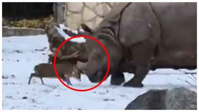 എതിരാളിയുടെ വലുപ്പത്തിൽ വീണ് തോൽവി സമ്മതിക്കുന്നവരാണ് നമ്മളിൽ പലരും. എന്നാൽ കഴിഞ്ഞ ദിവസം എഎഫ്പി ന്യൂസ് ഏജൻസി തങ്ങളുടെ എക്സ് അക്കൗണ്ടിലൂടെ പങ്കുവച്ച ഒരു വീഡിയോ കാഴ്ചക്കാരുടെ ശ്രദ്ധനേടി. പോളണ്ടിലെ റോക്ലോ മൃഗശാലയിൽ വെറും 13 കിലോഗ്രാം ഭാരമുള്ള ഒരു മാൻ 1.7 ടൺ ഭാരമുള്ള ഒരു കാണ്ടാമൃഗത്തെ ധൈര്യത്തോടെ നേരിടുന്നതായിരുന്നു വീഡിയോയിൽ ഉണ്ടായിരുന്നത്. എന്നിട്ടും പരിക്കേൽക്കാതെ മാൻ പുറത്ത് വന്നു. മാനിന്റെ ധൈര്യത്തെ സമൂഹ മാധ്യമ ഉപയോക്താക്കൾ പുകഴ്ത്തി.