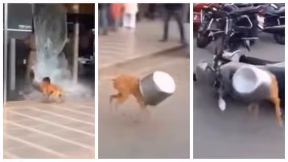 ഭയം മനുഷ്യനെയും മൃഗങ്ങളെയും ഏതാണ്ടൊരു പോലെയാണ് ബാധിക്കുക. പ്രത്യേകിച്ചും മരണഭയം. അത്തരം അവസ്ഥകളിൽ പരിഭ്രാന്തരാകുന്നവർ ഓടി രക്ഷപ്പെടാനാകും ആദ്യ ശ്രമം നടത്തുക. കഴിഞ്ഞ ദിവസം അത്തരമൊരു വീഡിയോ സമൂഹ മാധ്യമങ്ങളിൽ പങ്കുവയ്ക്കപ്പെട്ടപ്പോൾ നെറ്റിസെന്സിനെ അത് ഒരേ സമയം രസിപ്പിക്കുകയും സങ്കടപ്പെടുത്തുകയും ചെയ്തു. ഭക്ഷണത്തിനായി തലയിട്ട പാത്രത്തിൽ തല കുടുങ്ങി പോയ നായ പരിഭ്രാന്തനായി ഓടുന്നതായിരുന്നു ആ വീഡിയോ.