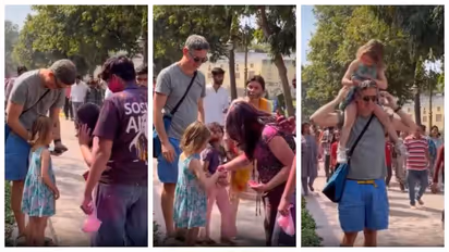 കഴിഞ്ഞ ദിവസം വൈറലായ ഒരു വീഡിയോയിൽ, റോഡരികിൽ നിൽക്കുന്ന വിദേശിയായ ഒരു പിതാവിനെയും കൊച്ചു മകളെയും കാണാം. ആഘോഷങ്ങൾക്കിടയിൽ ഒരു സ്ത്രീ വരികയും കുട്ടിയോട് ഹലോ പറഞ്ഞ് അവളുടെ കവിളിൽ ഛായം തേക്കുകയും ചെയ്യുന്നത് കാണാം. തുടർന്ന് പിതാവ് കുട്ടിയെ തോളിലെടുത്തുകൊണ്ട് നടന്നു നീങ്ങുകയും ചെയ്യുന്നു.