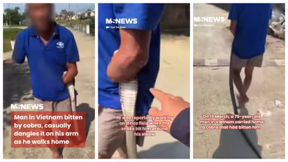 വിയറ്റ്നാമിന്റെ തീരദേശ നഗരമായ ഡാ നാങിൽ നിന്നുള്ള ഒരു വീഡിയോ സമൂഹ മാധ്യമ ഉപയോക്താക്കളെ അക്ഷരാർത്ഥത്തിൽ അമ്പരപ്പിച്ചു. ഇരുകൈപ്പത്തികളും നഷ്ടപ്പെട്ട പ്രായം ചെന്ന ഒരു മനുഷ്യൻ തന്നെ കടിച്ച ഒന്നാന്തരമൊരു മൂർഖനെ കൈമുട്ടിൽ ഇറുക്കിപ്പിടിച്ച് ആശുപത്രിയിലേക്ക് വരുന്ന കാഴ്ചയാണ് ഏവരെയും അമ്പരപ്പിച്ചത്. അത്യാവശ്യം വലിപ്പുമുള്ള മൂർഖനെയും കൊണ്ട് അദ്ദേഹം ഒറ്റയ്ക്ക് നടന്നുവരുന്നത് കണ്ടവരെല്ലാം അമ്പരന്നു. വീഡിയോ സമൂഹ മാധ്യമങ്ങളിൽ വൈറലായി.