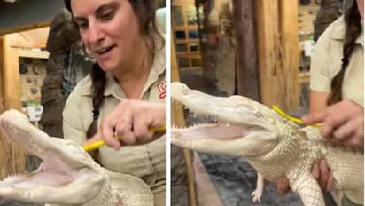 ഈ ചെറിയ വീഡിയോയില് മൃഗശാലയിലെ ജീവനക്കാരി മുതലയെ വൃത്തിയാക്കുന്നതും കാണാം. അതിനായി ഒരു ചെറിയ ടൂത്ത്ബ്രഷ് എടുത്ത് അതിന്റെ പുറത്തൂടെ പതിയെ ഉരച്ച് കൊടുക്കുകയാണ്. 'കോക്കനട്ട്' എന്നാണ് ഈ മുതലക്കുഞ്ഞിന്റെ പേര് എന്ന് അടിക്കുറിപ്പിൽ നിന്നും വ്യക്തമാകുന്നുണ്ട്. ബ്രഷ് കൊണ്ട് ഉരച്ച് കൊടുക്കുമ്പോള് അത് ചിരിക്കുന്നതും വീഡിയോയിൽ വ്യക്തമായി കാണാം. ഇങ്ങനെ താലോലിക്കുന്നത് അതിന് ഇഷ്ടപ്പെടുന്നുണ്ട് എന്ന് അതില് നിന്നും തന്നെ മനസിലാവും.
