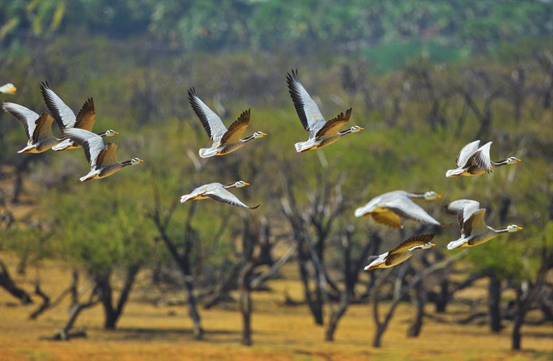 ചെറിയ തുരുത്തുകളും മരങ്ങളും കുറ്റിച്ചെടികളുമെല്ലാം അന്നേരം ദേശാടനപക്ഷികൾ കയ്യടക്കും.