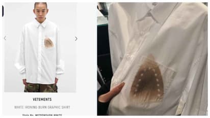 സംഭവം, സ്വിസ് ലേബലായ വെറ്റമെന്റ്സ് എന്ന ഫാഷൻ കമ്പനി പുതിയൊരു ഷർട്ട് പുറത്തിറക്കിയതാണ്. വെള്ള ഷർട്ടിൽ പ്രന്റ് ചെയ്ത പോലൊരു അടയാളം. കാഴ്ചയിൽ നന്നായി ചൂടായ അയൺബോക്സ് വച്ച് പൊള്ളിച്ച പോലുണ്ട്. അയൺ ചെയ്യുമ്പോൾ അബദ്ധത്തിൽ ചൂടായ അയൺബോക്സ് വച്ച് പൊള്ളിപ്പോകുന്ന ഷർട്ട് പോലെ. പക്ഷേ ഈ ഷർട്ടിന്റെ പ്രീമിയം വിലയാണ് സമൂഹ മാധ്യമ ഉപയോക്താക്കൾക്ക് സഹിക്കാൻ പറ്റാത്തത്. 1,139 ഡോളർ. അതായത് ഏകദേശം 1,03,000 രൂപ ! 'വൈറ്റ് അയണിങ് ബേൺ ഗ്രാഫിക് ഷർട്ട്' എന്ന് വിളിക്കപ്പെടുന്ന പ്രീമിയം ഷർട്ട് വലിയ സൈസ് ആണ്. നെഞ്ചിലെ പോക്കറ്റിനടുത്ത് ഒരു ഇരുണ്ട സ്കോർച്ച് മാർക്കിന്റെ രൂപത്തിൽ ഇസ്തിരിപ്പെട്ടിയുടെ പാട് കാണാം. ചൂടായ ഇരുമ്പ് കൂടുതൽ നേരം അമർത്തിപ്പിടിക്കുമ്പോൾ വസ്ത്രത്തിൽ അവശേഷിക്കുന്ന അതേ പൊള്ളലേറ്റ പാട്. അയൺ ബോക്സിലെ മാർക്കുകളും വ്യക്തം. അത്ര കൃത്യമായിട്ടാണ് ഷർട്ട് രൂപകൽപ്പന ചെയ്തിരിക്കുന്നത്.