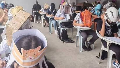 പരീക്ഷകൾക്ക് വിദ്യാർത്ഥികൾ കോപ്പിയടിക്കുന്നത് എന്നും അധ്യാപകർക്ക് തലവേദനയാണ്. അങ്ങോട്ടും ഇങ്ങോട്ടും നോക്കി എഴുതുന്നതും ചോദിച്ചെഴുതുന്നതും അതേ. എന്നാൽ, ഇപ്പോൾ സാമൂഹിക മാധ്യമങ്ങളിൽ വൈറലാവുന്നത് ഫിലിപ്പീൻസിൽ നിന്നുള്ള ചില ചിത്രങ്ങളാണ്. കണ്ടാൽ ആർക്കായാലും ചിരി വരുന്നവയാണ് ആ ചിത്രങ്ങൾ. അതിൽ കോപ്പിയടിക്കാതിരിക്കാൻ വിദ്യാർത്ഥികളോട് തലയിൽ എന്തെങ്കിലും ധരിച്ചിട്ടു വരണം എന്നാണ് അധ്യാപകർ ആവശ്യപ്പെട്ടത്. എന്നാൽ, വിദ്യാർത്ഥികൾ ധരിച്ചിരിക്കുന്നതാവട്ടെ തമാശ തോന്നിക്കുന്ന ചില വസ്തുക്കളാണ്.