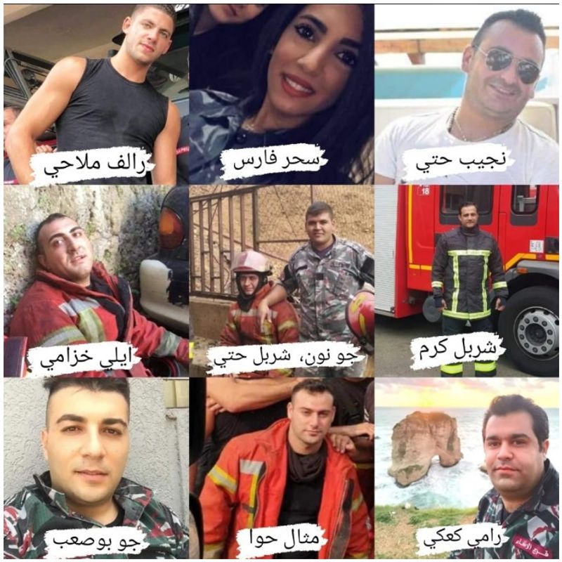 വടക്കൻ ബെയ്റൂത്തിലെ ലാ ക്വാറന്റീനിൽ ഉള്ള ഫയർ സ്റ്റേഷനിൽ നിന്നാണ് ഇവർ ഗോഡൗണിലേക്ക് വന്നെത്തിയത്. പത്തംഗ സംഘത്തിൽ സാറാ ഫാരിസിന്റെ മൃതദേഹം മാത്രമാണ് കണ്ടെത്തപ്പെട്ടിട്ടുള്ളത്. ബാക്കിയുള്ള ഒമ്പതുപേരും ഇപ്പോഴും തകർന്നടിഞ്ഞു കിടക്കുന്ന കെട്ടിടാവശിഷ്ടങ്ങൾക്കിടയിൽ എവിടെയോ ഉണ്ട്. അവർ ജീവനോടെ തിരികെ വരും എന്ന വീട്ടുകാരുടെ പ്രതീക്ഷകൾ അസ്തമിച്ചുകൊണ്ടിരിക്കയാണ്.