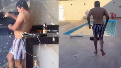 പിറന്നാൾ ആഘോഷത്തിനിടയിൽ പിറന്നാളുകാരന്റെ കയ്യിലിരുന്ന് കേക്ക് പൊട്ടിത്തെറിച്ചു. യുവാവ് പിന്നാലെ പൂളിലേക്ക് എടുത്തുചാടി. സംഭവത്തിന്റെ വീഡിയോ ദൃശ്യങ്ങൾ ഇപ്പോൾ സാമൂഹികമാധ്യമങ്ങളിൽ പ്രചരിക്കുന്നുണ്ട്. അതേസമയം, വീഡിയോയെ ചൊല്ലി വിവിധ തരത്തിലുള്ള ചർച്ചകളും സോഷ്യൽ മീഡിയയിൽ ഉയരുന്നുണ്ട്. ഇത് അബദ്ധത്തിൽ സംഭവിച്ചതാണോ, അതോ പ്രാങ്കോ മറ്റോ ആണോ എന്നതാണ് നെറ്റിസൺസിന്റെ സംശയം.