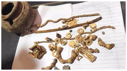 ഈ സ്വർണ്ണാഭരണങ്ങൾ സ്ത്രീദൈവങ്ങളുടെ വിഗ്രഹങ്ങൾ അലങ്കരിക്കുന്നതിനായി പ്രത്യേകമായി നിർമ്മിച്ചതാണെന്നാണ് വിദഗ്ധരുടെ നിഗമനം. ഉത്സവ വേളകളിലും മറ്റും അമ്പലങ്ങളിലെ വിഗ്രഹങ്ങളിൽ ചാർത്തുന്നതിനാണ് ഇവ ഉപയോഗിച്ചിരുന്നത്. ഈ ആഭരണങ്ങളോടൊപ്പം ഒരു സ്ത്രീദൈവത്തിന്റെ വിഗ്രഹവും കണ്ടെത്തിയത് ഈ വിശ്വാസത്തെ കൂടുതൽ ബലപ്പെടുത്തുന്നു. നീലക്കല്ല് (Sapphire), സ്ഫടികം, പവിഴം തുടങ്ങിയ അപൂർവ്വ രത്നങ്ങൾ ഉപയോഗിച്ച് അതീവ നൈപുണ്യത്തോടെയാണ് ഇവ നിർമ്മിച്ചിരിക്കുന്നത്.