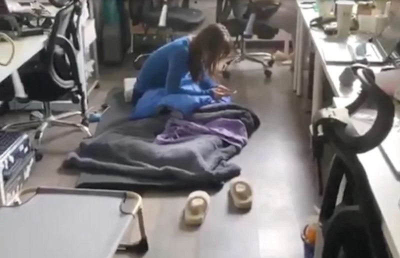 ഇരുപത് സഹപ്രവര്ത്തകരുമായി ദിവസങ്ങളായി താന് ഓഫീസില് അന്തിയുറങ്ങുകയാണെന്ന് ഒരു ഹെഡ്ജ് ഫണ്ട് മാനേജറായ ഹെന്ട്രി ബ്ലൂംബര്ഗിനോട് പറഞ്ഞു. ഇവിടെ കുളിക്കാനുള്ള സൗകര്യമില്ലെങ്കിലും ഹീറ്ററുകളില് വെള്ളം ചൂടാക്കി ഒരുവിധം ഒപ്പിച്ചുപോവുകയാണ് എന്ന് ഇയാള് പറഞ്ഞു. അടുത്തുള്ള ബഹുനില കെട്ടിടങ്ങളില്നിന്നുള്ള വെളിച്ചം ഉറക്കത്തിന് ശല്യമാവുന്നതിനാല്, ആ കെട്ടിടങ്ങളിലെ ജീവനക്കാരോട് രാത്രിയില് ബള്ബുകള് ഓഫ് ചെയ്യാന് ആവശ്യപ്പെടുകയാണെന്നും ഇയാള് പറയുന്നു.