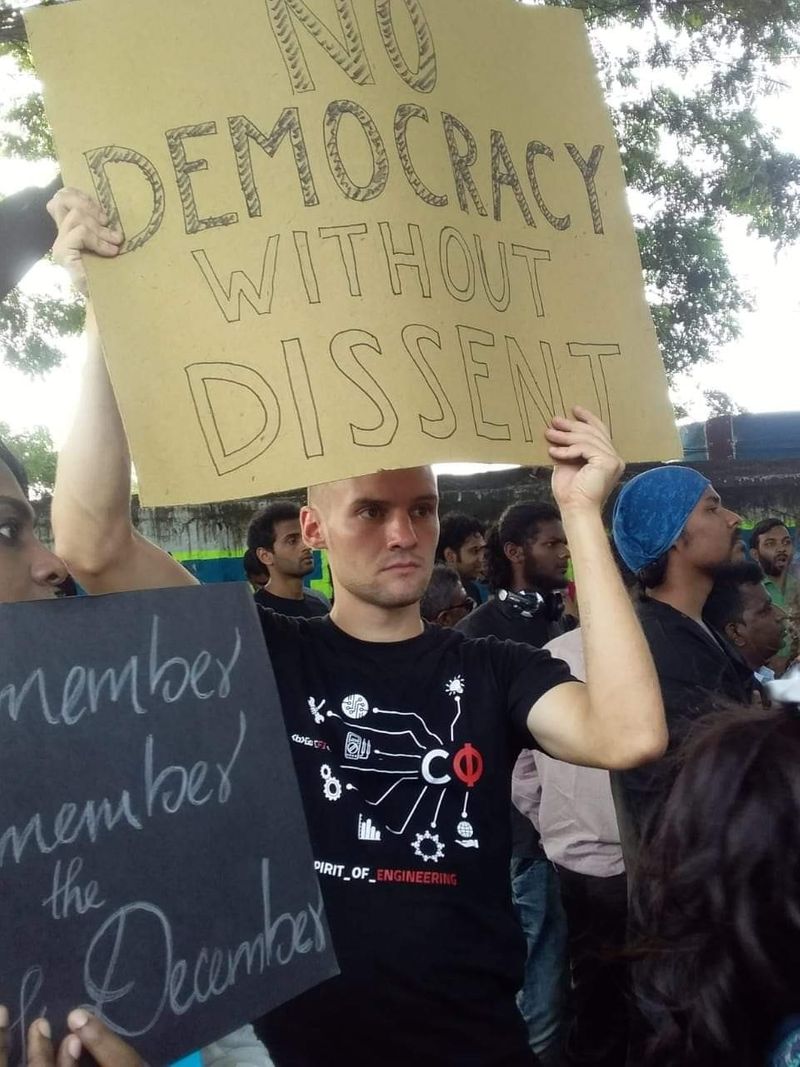 ജർമനിയിലെ ഡ്രെസ്ഡൻ സ്വദേശിയായ ജേക്കബ് ഇക്കൊല്ലം ഓഗസ്റ്റിലാണ് ഒരു സ്റ്റുഡന്റ് എക്സ്ചേഞ്ച് പ്രോഗ്രാം വഴി മദ്രാസ് ഐഐടിയിൽ പഠിക്കാനെത്തിയത്. 2020 മെയ് വരെ ജേക്കബിന് ഇവിടെ പഠനം തുടരേണ്ടതുണ്ടായിരുന്നു. പ്രകടനത്തിൽ പങ്കുചേർന്നുകൊണ്ടുള്ള തന്റെ ചിത്രവും വാർത്തയുമൊക്കെ വൈറലായ ശേഷം ഇമിഗ്രേഷൻ അധികൃതർ തന്നെ വിളിച്ചുവരുത്തി രാജ്യം വിടാൻ ആവശ്യപ്പെടുകയായിരുന്നു എന്നാണ് ജേക്കബ് 'ദ ഫെഡറലി'നോട് പറഞ്ഞത്. ആദ്യമാദ്യം വളരെ സൗഹാർദ്ദപരമായിട്ടായിരുന്നു ചോദ്യങ്ങൾ. അതുകൊണ്ടുതന്നെ താൻ ഏറെ ലാഘവത്തോടെയാണ് അവരോട് സംസാരിച്ചത് എന്ന് ജേക്കബ് പറഞ്ഞു. എന്നാൽ, താമസിയാതെ ഉദ്യോഗസ്ഥന്റെ സംസാരത്തിന്റെ ഘനം കൂടി. തന്നോട് ശകാരത്തിന്റെ ഭാഷയിലാണ് പിന്നീട് എന്തിനാണ് പൗരത്വ നിയമ ഭേദഗതിക്കെതിരായ പ്രതിഷേധങ്ങളിൽ പങ്കെടുത്തത് എന്നൊക്കെ ചോദിച്ചത്. അപ്പോഴാണ് തനിക്ക് കാര്യങ്ങൾ വഷളാകാൻ പോവുകയാണ് എന്ന് മനസ്സിലായതെന്ന് ജേക്കബ് പറഞ്ഞു.