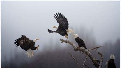 യുഎസ്എയിലെ അലാസ്ക ചില്ക്കാട്ട് ബാല്ഡ് ഈഗില് സംരക്ഷണ കേന്ദ്രത്തില് നിന്നും കാര്ത്തിക് സുബ്രഹ്മണ്യന് പകര്ത്തിയ 'ഡാന്സ് ഓഫ് ദ ഈഗിള്സ്' എന്ന ചിത്രത്തിനാണ് ഈ വര്ഷത്തെ നാഷണല് ജിയോഗ്രാഫിക്കിന്റെ പിക്ചേഴ്സ് ഓഫ് ദ ഇയര് അവര്ഡ്. 5000 -ത്തോളം മത്സരാര്ത്ഥികളെ മറികടന്നാണ് കാര്ത്തിക് സുബ്രഹ്മണ്യം ഈ നേട്ടം സ്വന്തമാക്കിയത്. 'എവിടെ സാല്മണ് ഉണ്ടോ അവിടെ അരാജകത്വമുണ്ട്.' എന്നാണ് ഇന്ത്യന് വംശജനായ കാര്ത്തിക് സുബ്രഹ്മണ്യന്റെ മുദ്രാവാക്യം. സാല്മണെ കഴിക്കാനായെത്തുന്ന കഷണ്ടിത്തലയന് പരുന്തിലാണ് (bald eagles) കാര്ത്തിക്കിന്റെ ശ്രദ്ധമുഴുവനും.