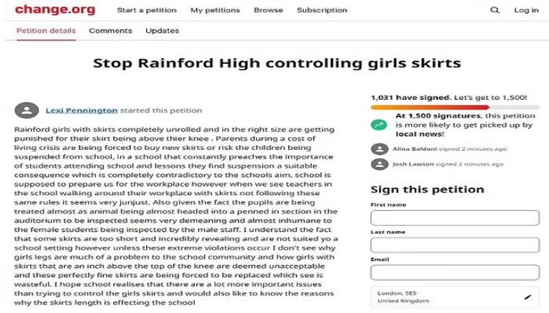 മെർസിസൈഡിലെ റെയിൻഫോർഡ് ഹൈസ്കൂളിലെ വിദ്യാര്ത്ഥികളും രക്ഷിതാക്കളും വലിയ പ്രതിഷേധത്തിലാണ്. കാര്യം വേറൊന്നുമല്ല. നമുക്കറിയാം ഓരോ സ്കൂളിനും ഓരോ യൂണിഫോം പോളിസി ഉണ്ടാകും. അതുപോലെ റെയിന്ഫോര്ഡിനുമുണ്ട്. അതില് പെണ്കുട്ടികളുടെ പാവാടയുടെ നീളത്തെ കുറിച്ചും സൂചിപ്പിക്കുന്നുണ്ട്. എന്നാല്, പെണ്കുട്ടികളുടെ പാവാടയുടെ നീളം പുരുഷ അധ്യാപകര് പരിശോധിച്ചു എന്ന് ആരോപിച്ചാണ് ഇപ്പോള് വിദ്യാര്ത്ഥികളും രക്ഷിതാക്കളും പ്രതിഷേധിക്കുന്നത്.