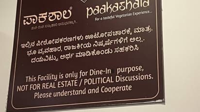 ചായക്കടകൾ, റെസ്റ്റോറന്റുകൾ ഇവയൊന്നും മിക്കപ്പോഴും നമുക്ക് ഭക്ഷണം കഴിക്കാനുള്ള ഇടം മാത്രമല്ല. മറിച്ച് പലവിധ കാര്യങ്ങൾ സംസാരിക്കുകയും ചർച്ച ചെയ്യുകയും ഒക്കെ ചെയ്യുന്ന ഇടം കൂടിയാണ്. അതുപോലെ തന്നെ റിയൽ എസ്റ്റേറ്റിലടക്കം പല കച്ചവടങ്ങളും ചർച്ച ചെയ്യപ്പെടുന്ന ഇടങ്ങളാണ് ഇവ. സിനിമാ ചർച്ചകളും രാഷ്ട്രീയ ചർച്ചകളും റെസ്റ്റോറന്റുകളിലും, ചെറുതും വലുതുമായ ടീ/കോഫീ ഷോപ്പുകളിൽ നടക്കാറുണ്ട്. എന്നാൽ, ബെംഗളൂരുവിലെ ഒരു റെസ്റ്റോറൻറിൽ ഇതുമായി ബന്ധപ്പെട്ട് വച്ച ഒരു മുന്നറിയിപ്പാണ് ഇപ്പോൾ ചർച്ചയാവുന്നത്.