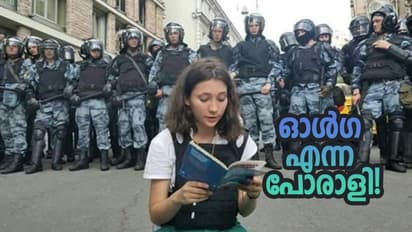 ഇത് സമീപകാലത്ത് മാധ്യമങ്ങളിൽ പ്രത്യക്ഷപ്പെട്ടിട്ടുള്ളതിൽ വെച്ച് ഏറ്റവും ശക്തമായ ഒരു ചിത്രമാണ്. പിന്നിൽ പുടിൻറെ കുപ്രസിദ്ധമായ മോസ്കോ റയട്ട് പോലീസിന്റെ ഒരു സായുധവ്യൂഹം. അവർക്കു മുന്നിൽ റോഡിന്റെ നടുവിൽ ചമ്രം പടിഞ്ഞിരുന്നുകൊണ്ട് നീലച്ചട്ടയുള്ളൊരു കുഞ്ഞുപുസ്തകം വായിക്കുന്ന ഒരു പെൺകുട്ടി. ആരാണിവൾ...? ഏതുപുസ്തകമാണിവൾ ഇങ്ങനെ ഇത്രയും റിസ്കെടുത്തുകൊണ്ട് വായിക്കുന്നത്..?