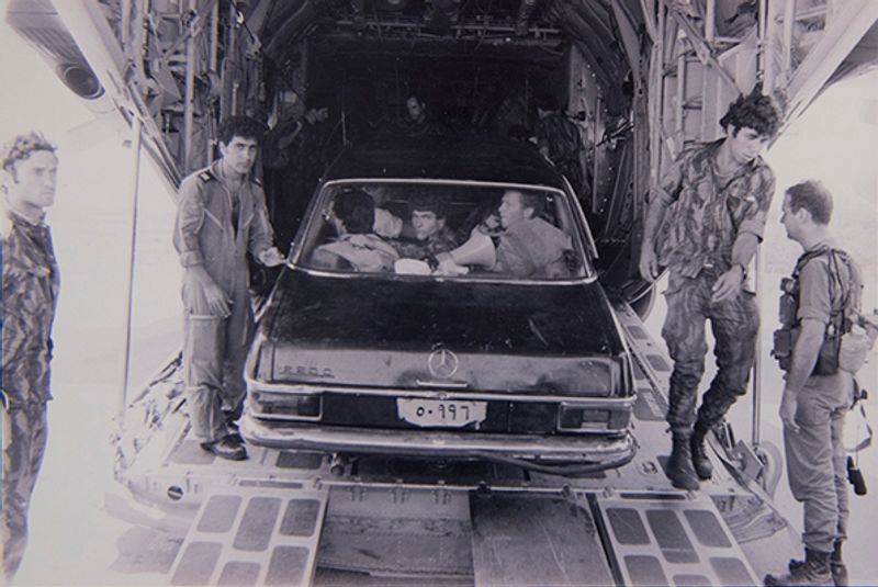 സമയം തീരെ കുറവായതിനാൽ ലാൻഡ് ചെയ്തതും ആ കാർഗോ വിമാനത്തിന്റെ വാതിലുകൾ തുറന്നതും ഒക്കെ ഒന്നിച്ചായിരുന്നു. നിമിഷനേരത്തിനുള്ളിൽ അതിൽ നിന്നും ഈദി അമീന്റെ വാഹനവുമായി സാമ്യമുള്ള ഒരു മെഴ്സിഡസ് ബെൻസും പിന്നെ അദ്ദേഹത്തിന്റെ അകമ്പടി വാഹനങ്ങളുമായി സാമ്യമുള്ള ലാൻഡ് റോറോവറുകളും കമാണ്ടോകളുമായി വിമാനത്തിന്റെ റൺവേയിലേക്ക് ഇറങ്ങി.
