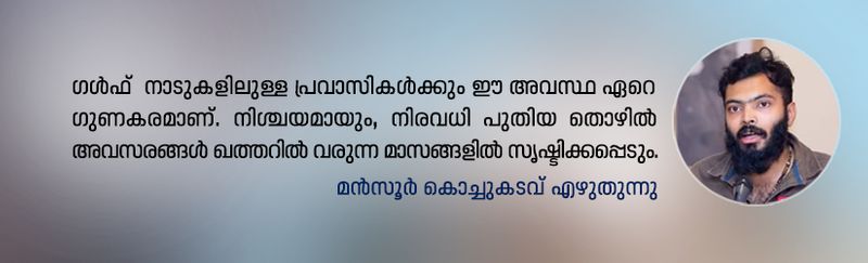 ഉപരോധം മാറുന്നതോടെ കാര്യമായ മാറ്റങ്ങള് ഖത്തറിന്റെ സാമ്പത്തിക രംഗത്ത് ഉണ്ടാവും. അയല്രാജ്യങ്ങളുമായി നല്ലരീതിയില് വിലപേശാനുള്ള കരുത്തും ഖത്തറിന് ഉണ്ടാവും. ഗള്ഫ് നാടുകളിലുള്ള പ്രവാസികള്ക്കും ഈ അവസ്ഥ ഏറെ ഗുണകരമാണ്. നിശ്ചയമായും, നിരവധി പുതിയ തൊഴില് അവസരങ്ങള് ഖത്തറില് വരുന്ന മാസങ്ങളില് സൃഷ്ടിക്കപ്പെടും.