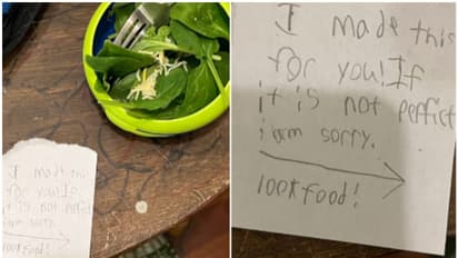 അസംസ്കൃത ചീരയും കുറച്ച് നൂഡില്സും അടങ്ങിയ പാത്രത്തിന് സമീപം മേശപ്പുറത്ത് ഒരു കുറിപ്പും അവന് എഴുതി വച്ചിരുന്നു. "ഞാനിത് നിങ്ങള്ക്കായി ഉണ്ടാക്കിയതാണ്. നന്നായില്ലെങ്കില് ക്ഷമിക്കൂ, ഭക്ഷണം നോക്ക്!' മകന്റെ കരുതല് അമ്മ എറിന് റീഡ് തന്റെ ട്വിറ്റര് അക്കൌണ്ടിലൂടെ പങ്കുവച്ചു. നിമിഷനേരം കൊണ്ട് തന്നെ ട്വിറ്റ് വൈറലായി. മൂന്ന് ലക്ഷത്തിന് മേലെ ആളുകളാണ് കുറിപ്പ് ഇതിനകം കണ്ടത്. രണ്ടായിരത്തി അഞ്ചൂറോളം പേര് റീട്വീറ്റ് ചെയ്തു, അപ്പം രസകരമായ കമന്റുകളും പോസ്റ്റിന് ലഭിച്ചു.