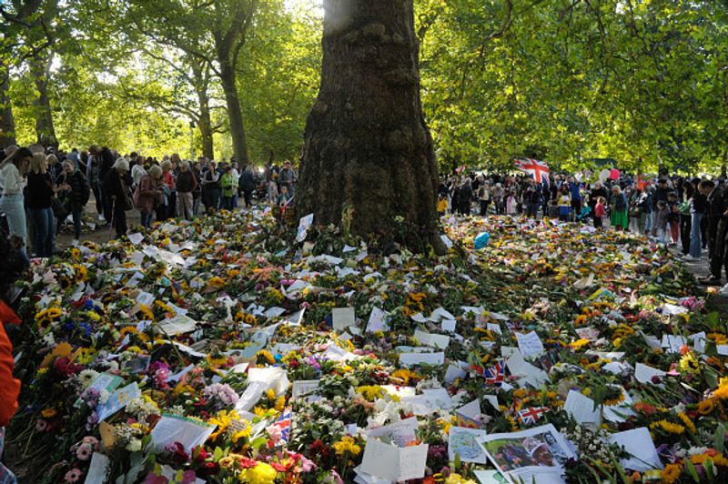 ലണ്ടനിലെ ഗ്രീൻ പാർക്കിൽ കാലുകുത്താൻ പോയിട്ട് ഒരു തരി പുല്ലുപോലും കാണാൻ പറ്റാത്ത അവസ്ഥയാണ് ഇപ്പോൾ. ആ രീതിയിൽ പൂക്കൾ കൊണ്ട് നിറഞ്ഞിരിക്കുകയാണ് പാർക്ക്. എലിസബത്ത് രാജ്ഞയ്ക്കായി പുഷ്പാഞ്ജലി അർപ്പിക്കുന്നതിനുള്ള രണ്ട് ഔദ്യോഗിക പാർക്കുകളിൽ പ്രധാനപ്പെട്ടതാണ് ബക്കിംഗ്ഹാം കൊട്ടാരത്തിനോട് ചേർന്നുള്ള ഗ്രീൻ പാർക്ക്.