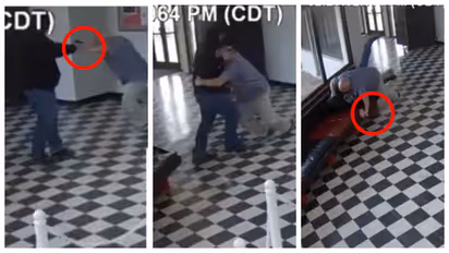 വീഡിയോയിൽ ഒരു ഹാളിലെ നീണ്ട ഇരിപ്പിത്തിൽ ഒരാൾ ഇരിക്കുന്നത് കാണാം. ഇതിനിടെ തുറന്ന് കിടന്ന വാതിലിലൂടെ ഒരാൾ വലത് കൈയിൽ പിടിച്ച തോക്കുമായി അകത്ത് കയറി. പിന്നാലെ സമീപത്തെ മുറിയിൽ നിന്നും പുറത്ത് വന്ന പ്രിൻസിപ്പാൾ കിർക് മൂർ ഇയാളുടെ നേരെ ചാടുകയും ഇരുവരും കൂടി സെറ്റിയിലേക്ക് മറിയുന്നതും കാണാം. തന്റെ സർവ്വ ശക്തിയും എടുത്ത് അക്രമിയെ കീഴ്പ്പെടുത്തിയ പ്രിൻസിപ്പാൾ അയാളെ അനങ്ങാൻ പോലും അനുവദിച്ചില്ല. ഇതിനിടെ അക്രമിയുടെ കൈയിൽ നിന്നും താഴെ വീണ തോക്ക് മറ്റൊരാൾ എടുത്ത് കൊണ്ട് പോകുന്നതും വീഡിയോയിൽ കാണാം. അക്രമിയെ കീഴടക്കുന്നതിനിടെ കിർക് മൂറിന്റെ കാലിന് വെടിയേറ്റു. അദ്ദേഹം സുഖം പ്രാപിച്ച് വരുന്നതായി റിപ്പോര്ട്ടുകൾ പറയുന്നു.