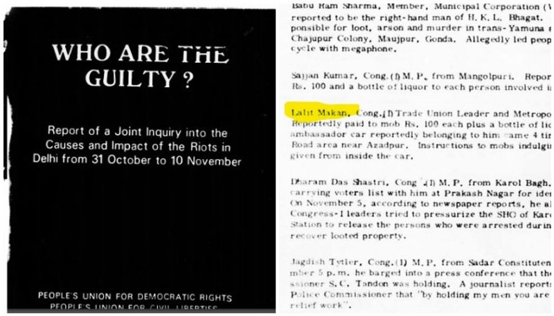 1984 ഇന്ദിരാഗാന്ധിയുടെ വധത്തിനു തൊട്ടുപിന്നാലെ പൊട്ടിപ്പുറപ്പെട്ട സിഖ് വിരുദ്ധ കലാപത്തിൽ നേരിട്ട് പങ്കെടുത്തിട്ടുള്ള കോൺഗ്രസ് നേതാവാണ് മാഖനെന്ന കാര്യം എല്ലാവർക്കും അറിവുള്ളതാണ്. പീപ്പിൾസ് യൂണിയൻ ഫോർ സിവിൽ ലിബർട്ടീസ് (PUCL) എന്ന സംഘടന അക്കാലത്ത്, 'ഉത്തരവാദികൾ ആരാണ്..?' ( 'Who Are The Guilty') എന്ന പേരിൽ 31 പേജുകളുള്ള ഒരു കൊച്ചു കൈപ്പുസ്തകം ഇറങ്ങിയിരുന്നു. വെറും മൂന്നുദിവസം കൊണ്ട് 17,000 -ലധികം സിഖുകാരുടെ വധത്തിന് കാരണമായ കലാപങ്ങൾക്ക് ജനങ്ങളെ ഇളക്കിവിട്ട 227 നേതാക്കളുടെ പേരുകൾ അച്ചടിച്ചിരുന്നു ആ പുസ്തകത്തിൽ. ഈ ഹിറ്റ് ലിസ്റ്റിൽ നാലാമതായിരുന്നു ലളിത് മാഖൻ.