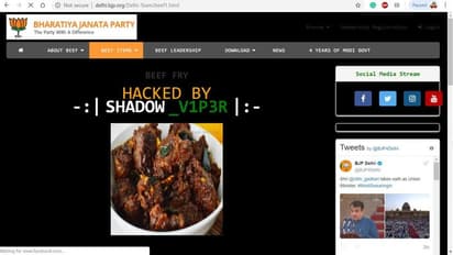 ഒപ്പം 'ഹാക്ക്ഡ് ബൈ Shadow_V1P3R' എന്ന സന്ദേശവും അയച്ചിട്ടുണ്ടായിരുന്നു. വെബ്സൈറ്റിന്റെ ഹോം പേജില് ബിജെപി എന്നതില് മാറ്റം വരുത്തി പകരം ബീഫ് എന്നാക്കിയിട്ടുണ്ട്. ഉദാഹരണമായി ബി.ജെ.പിയെകുറിച്ച് കൂടുതല് അറിയുക എന്ന ഭാഗത്ത് ബീഫിനെ കുറിച്ച് എന്നും ബിജെപിയുടെ ചരിത്രം എന്നുള്ളിടത്ത് ബീഫിന്റെ ചരിത്രം എന്നും മാറ്റം വരുത്തിയിരിക്കുകയാണ് ഹാക്കര്മാര്.