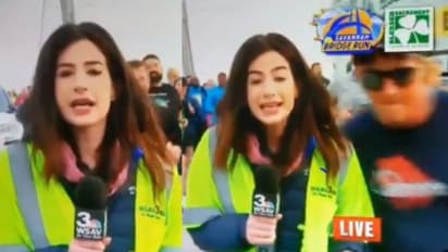 ജോര്ജിയയിലെ വെര്ച്വല് ചാനല് ത്രീയ്ക്ക് (WSAV-TV) വേണ്ടി ലൈവ് റിപ്പോര്ട്ടിങ് നടത്തുന്നതിനിടയിലാണ് അല്ക്സ ബോസര്ജാന് എന്ന റിപ്പോര്ട്ടര്ക്ക് ഇത്തരത്തിലൊരു അനുഭവം ഉണ്ടായത്. പാലത്തില് നിന്ന് മാരത്തണ് റിപ്പോര്ട്ട് ചെയ്യുകയായിരുന്നു ഇവര്. ചാനല് റിപ്പോര്ട്ടിങ്ങ് നടക്കുന്നുണ്ട് എന്നു മനസിലായതോടെ ഓടിവരുന്ന ആളുകളുടെ ആവേശം കൂടിയിരുന്നു. പുറകില് നിന്ന് പലരും കാമറയ്ക്ക് നേരെ കൈവീശുന്നുണ്ടായിരുന്നു.