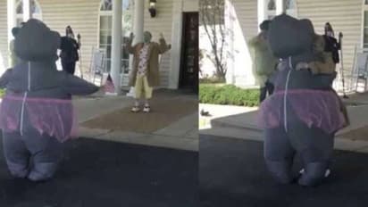 യുഎസിലെ വിര്ജിനിയ സ്വദേശിനിയായ പെണ്കുട്ടിയാണ് സ്റ്റിഫന്സ് സിറ്റിയിലെ നഴ്സിങ് സെന്ററിലെ അന്തേവാസിയായ അമ്മയെ കാണാന് രൂപം മാറിയെത്തിയത്. ഹിപ്പോപ്പൊട്ടാമസിന്റെ വേഷത്തിലാണ് മകള് അമ്മയെ കാണാനെത്തിയത്.