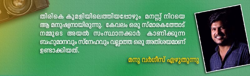 തിരികെ കുമളിയിലെത്തിയപ്പോഴും മനസ്സ് നിറയെ ആ മനുഷ്യനായിരുന്നു. കേവലം ഒരു സ്മാരകത്തോട് നമ്മുടെ അയല് സംസ്ഥാനക്കാര് കാണിക്കുന്ന ബഹുമാനവും സ്നേഹവും വല്ലാത്ത ഒരു അതിശയമാണ് ഉണ്ടാക്കിയത്.