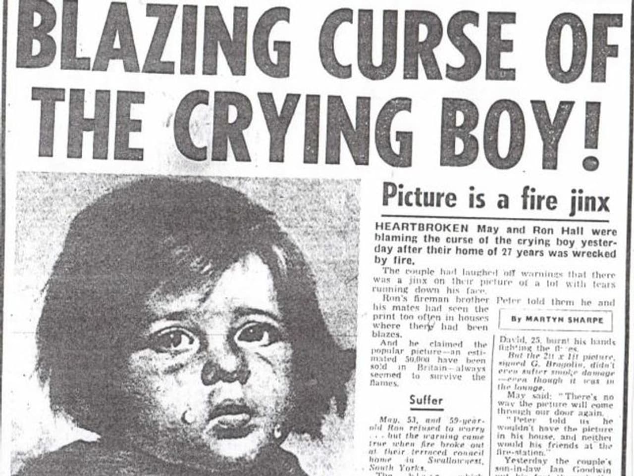 ഈ പെയിന്റിംഗ് സൂക്ഷിച്ച വീടുകളിൽ തീപ്പിടിത്തം ഉണ്ടാകുന്ന വാർത്തകൾ ആദ്യം യുകെയിൽ നിന്നുമാണ് വന്നു തുടങ്ങിയത്. താമസിയാതെ യൂറോപ്പിലും ഇത്തരത്തിലുള്ള വാർത്തകൾ പടർന്നു. 1985 സെപ്തംബർ 4 -ന് ബ്രിട്ടീഷ് ടാബ്ലോയിഡ് ദിനപത്രമായ 'ദി സൺ' ആണ് ഇത് ആദ്യമായി റിപ്പോർട്ട് ചെയ്തത്. തീപിടിത്തത്തിൽ ഒരു ദമ്പതികളുടെ വീട് കത്തിനശിച്ചുവെന്നും, 'ദ ക്രൈയിംഗ് ബോയ്' എന്ന ചിത്രത്തിന് ചുറ്റുപാടും കത്തിനശിച്ചിട്ടും, അവശിഷ്ടങ്ങൾക്കിടയിൽ അത് മാത്രം നശിക്കാതെ കിടന്നുവെന്നുമായിരുന്നു റിപ്പോർട്ട്.