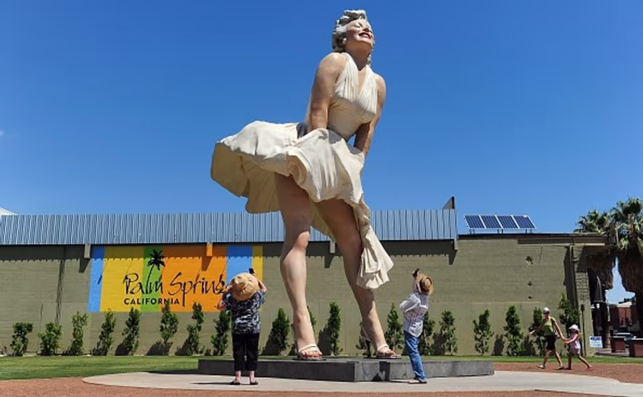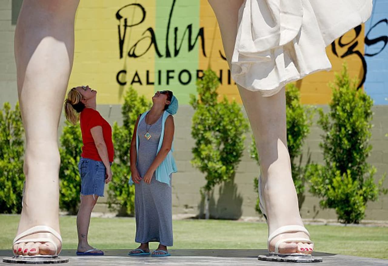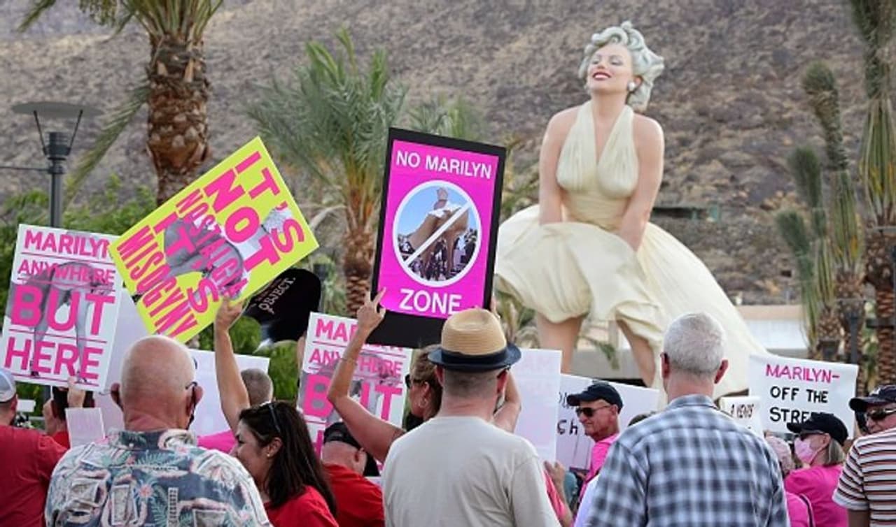 ഞായറാഴ്ചയാണ് പാം സ്പ്രിങ് ആര്ട്ട് മ്യൂസിയത്തിന് സമീപം മണ്റോയുടെ 26 അടി ഉയരമുള്ള പ്രതിമ അനാച്ഛാദനം ചെയ്തത്. ചടങ്ങില് നിരവധിപ്പേര് പ്രതിഷേധവുമായി എത്തി. 'ഫോര്എവര് മരിലിന്' എന്ന ഈ ശില്പം നിര്മ്മിച്ചിരിക്കുന്നത് ആര്ട്ടിസ്റ്റായ സെവാര്ഡ് ജോണ്സണ് ആണ്. 2011 -ൽ നിര്മ്മിച്ച പ്രതിമ ഈ ഹോളിവുഡ് താരത്തിന്റെ അടിഭാഗവും അടിവസ്ത്രങ്ങളും തുറന്നുകാട്ടുന്നതാണ് എന്നാണ് പ്രധാന ആരോപണം. ഇത് യുഎസിലെ നിരവധി സ്ഥലങ്ങളിൽ പര്യടനം നടത്തി, ന്യൂജേഴ്സിയിലെ ഹാമിൽട്ടണിലേക്ക് മാറ്റുന്നതിനുമുമ്പ് 2012 -ലാണ് പാം സ്പ്രിംഗ്സിൽ പ്രദർശിപ്പിക്കുന്നത്.